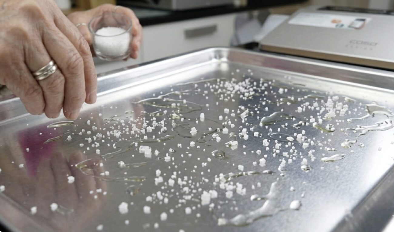 Коли ви покладете на таке деко курку, шматки мʼяса, овочі чи навіть рибу – нічого не пристане. Сіль вбирає зайву вологу, олія не дає утворюватися твердому нагару. Після запікання просто проведіть паперовим рушником по деку – і воно буде майже чисте. Навіть якщо ви будете запікати крильця в меду чи картоплю з сиром, їжа не прилипатиме і не пригоратиме.