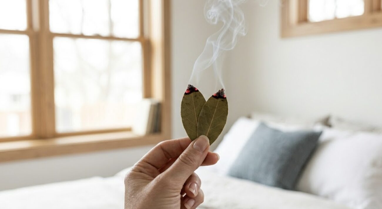 Лавра треба пару листочків. Підпаліть їх сірником, почекайте трохи, щоб верхній шматочок згорів, а потім задуйте. Листочок має тліти, давати легкий димок. Тепер не втрачайте часу і пройдіться по всіх кімнатах – від порогу вглиб квартири, не забуваючи кути, де найбільше накопичується негатив (так каже “стара школа” наших бабусь і дідусів). Вікна на час “обряду” треба закрити, щоб дим затримався в кімнаті.