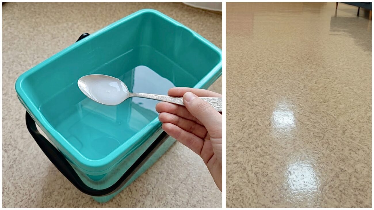 В першу чергу потрібно технічно привести підлогу до ладу. Спочатку приберіть усе сміття та пил, підметіть або пройдіться пилососом. Потім пару разів помийте підлогу просто звичайною водою, щоб змити основний бруд. Можна додати у воду трошки оцту, він чудово розчиняє бруд та залишки мийних засобів, які накопичувалися від попередніх прибирань і робили підлогу тьмяною.