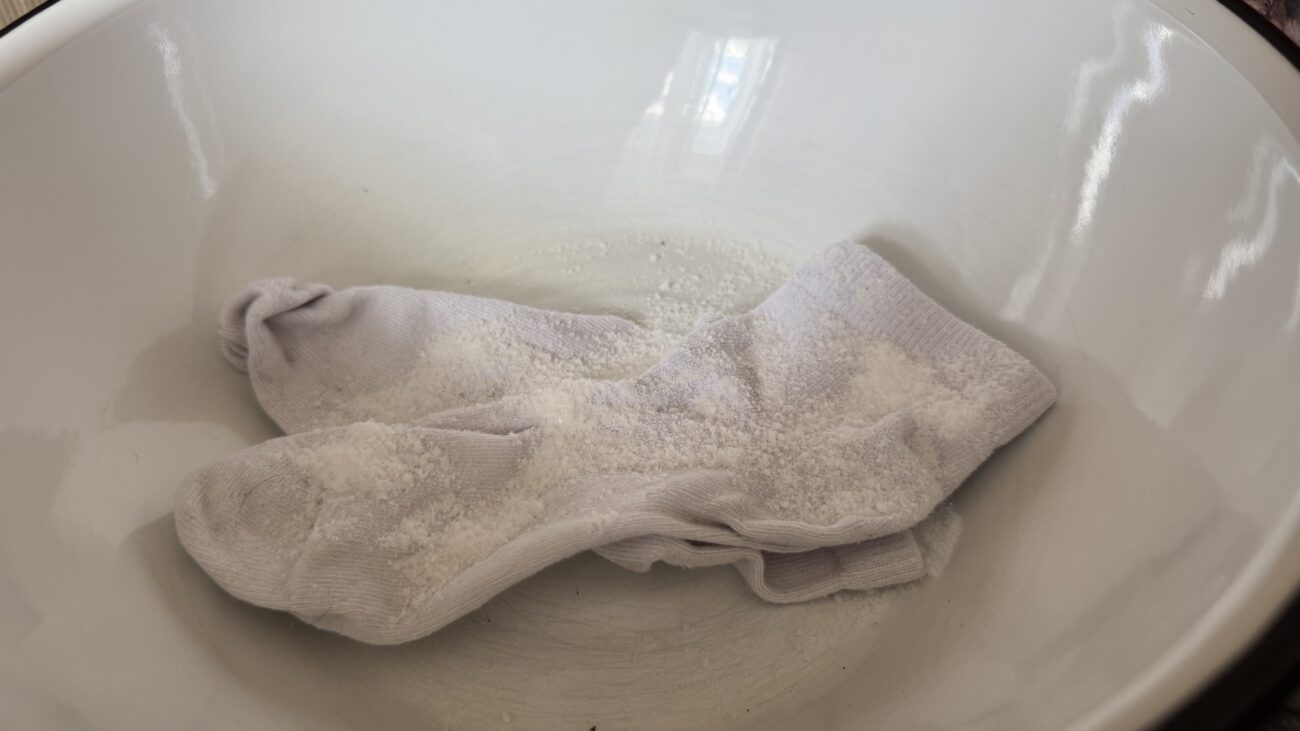 Технологія проста — на 1 літр гарячої води додають 3 столові ложки солі й залишають шкарпетки на 20-30 хвилин перед основним пранням, далі треба прати при температурі не менше 40 градусів. Як бонус, це ще й допоможе зберегти колір, якщо ви любите різнобарвні шкарпетки.