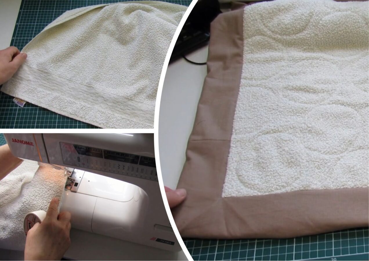 Для початку потрібно обрати, з якого рушника ви будете шити килимок. Після цього потрібно обрізати всі зайві частини – шви та краї. Залиште тільки м’яку частину, серединку без зайвого. Далі потрібно скласти рушник навпіл, аби готовий виріб був м’якшим. У вас має вийти прямокутник, але, за бажання, ви можете обрати будь-яку іншу форму – це не є принциповим питанням.