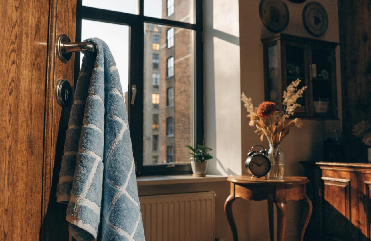 Після цього дістаньте рушник і добре відіжміть. Він уже буде злегка зволожений і насичений ароматом. Складіть його в кілька разів, щоб запах тримався довше, і повісьте на ручку дверей.