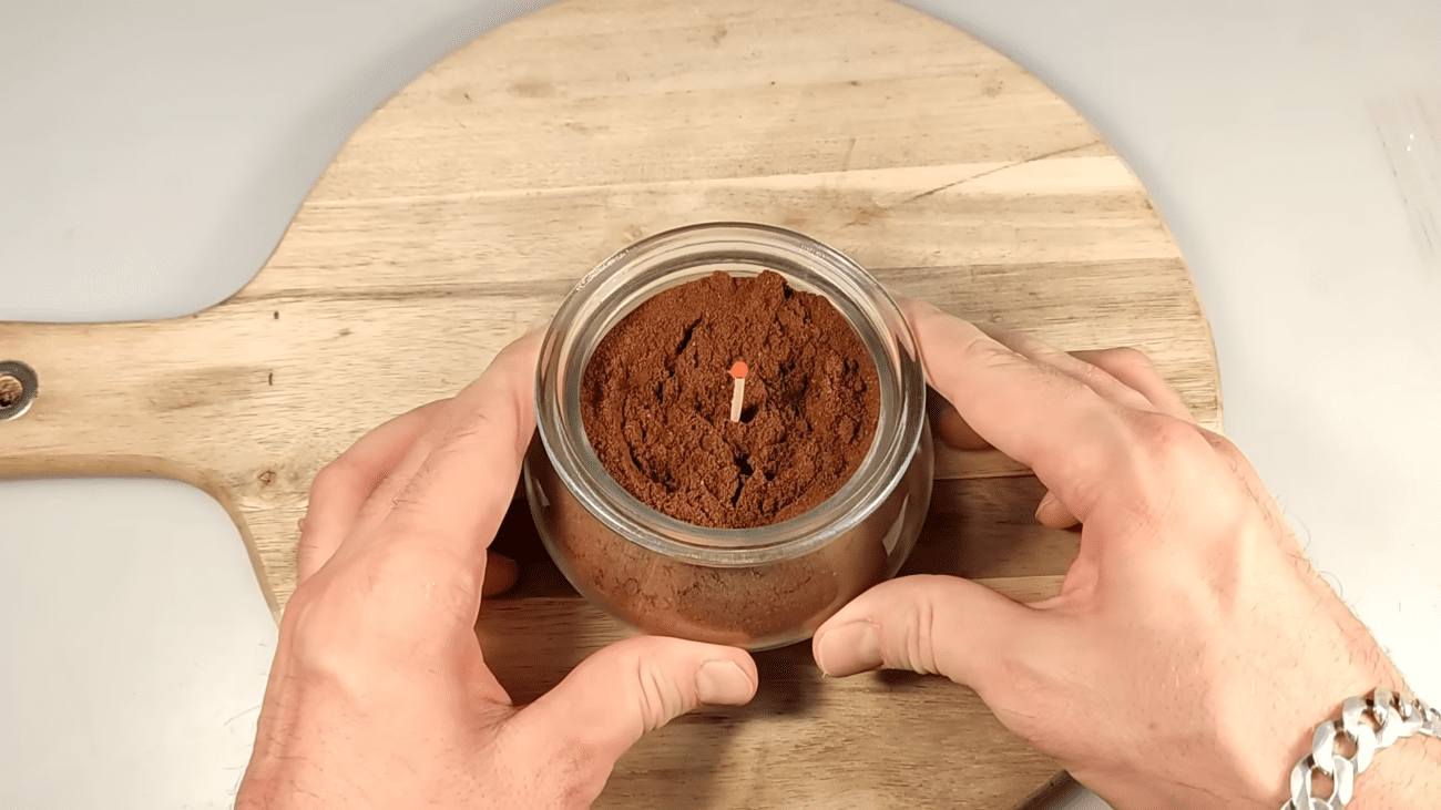 Тепер про найцікавіше. Візьміть суху кавову гущу, вставте в неї сірник і підпаліть. Полум’я швидко згасне, але гуща почне повільно тліти і виділяти дим. Саме цей дим і працює як природний репелент.