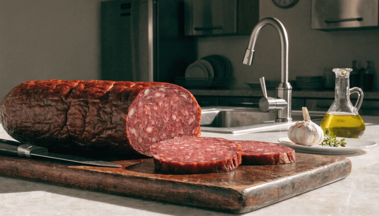 Завдяки ферментації така ковбаса має довший термін зберігання – до дев’яти місяців. Якщо бачите значно більший термін, варто насторожитися. Це може свідчити про додаткову обробку або невідповідність стандартам.