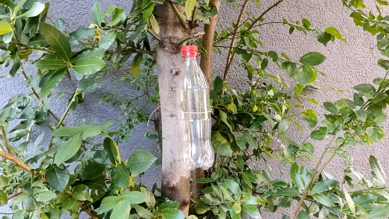 Готову пляшку підвісьте на гілку дерева або закріпіть у зручному місці в саду. Саме тут починає працювати ефект пастки. Запах оцту приваблює мушок, мух та інших дрібних комах, адже нагадує ферментовані плоди. Коли вони сідають на рідину, миючий засіб зменшує поверхневий натяг, і комахи одразу тонуть.