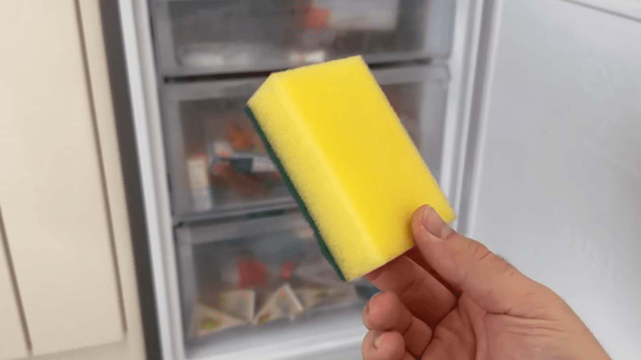 Візьміть звичайну нову губку для миття посуду, а краще підготуйте одразу кілька штук. Відкрийте морозильну камеру та покладіть у кожен ящик хоча б по одній такій губці. Саме за такого підходу цей метод працює найкраще. Коли ви розкладете їх по місцях, просто закривайте камеру та продовжуйте користуватися технікою у звичному режимі, не вигадуючи нічого зайвого.