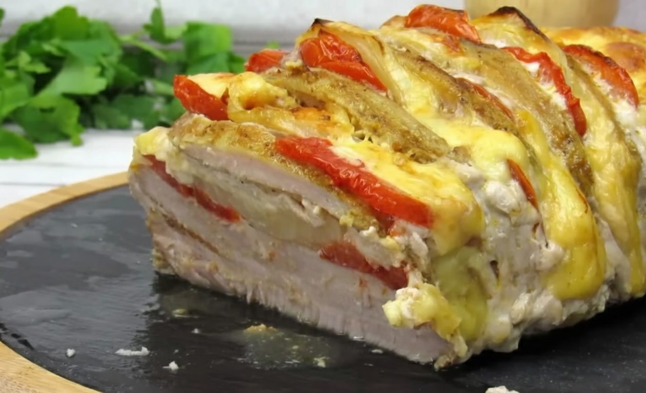 Винахідливі кулінари добре знають, як зі звичайного шматка свинини зробити кулінарний шедевр, який виглядає дуже святково, а готується надзвичайно просто. Секрет у правильному маринаді і подачі у формі гармошки з сиром і помідорами. Цей рецепт розрахований приблизно на чотири хороші порції.