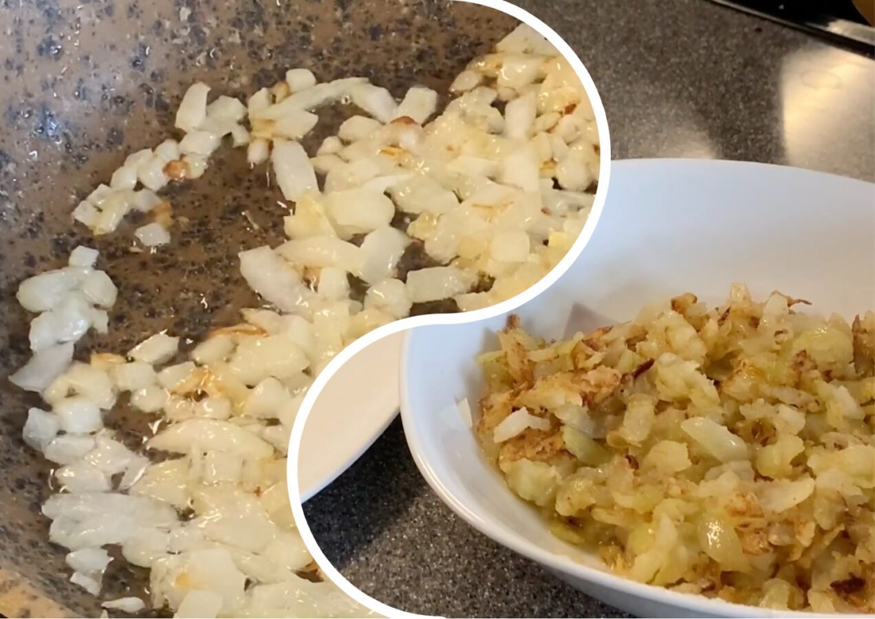 Коли цибуля стала прозорою – це сигнал до того, що відходити від плити вже не можна. З цього моменту її потрібно помішувати майже постійно. Ви маєте буквально “ловити” той ідеальний стан, коли волога остаточно випарувалася, а шматочки почали вкриватися тонким золотистим шаром. Про готовність цибулі підкаже колір.
