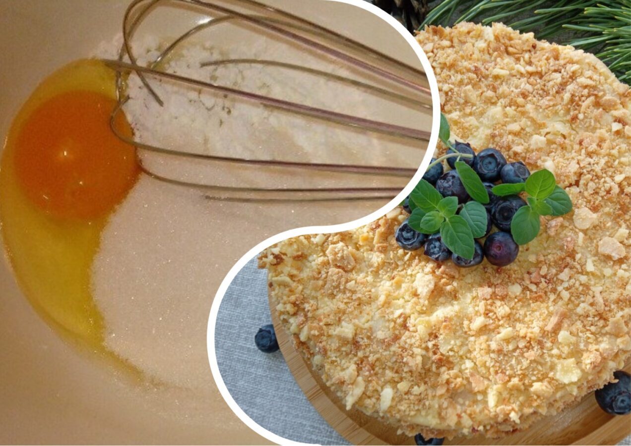 Головний секрет торта “Наполеон”, який готують на сковорідці, полягає в тому, що готовий десерт виходить значно смачнішим, м’якшим і ніжнішим завдяки особливій структурі коржів. Для приготування тіста на торт вам знадобляться наступні продукти: