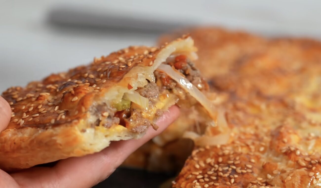 Якщо ваша сімʼя полюбляє фастфуд, спробуйте приготувати цей пиріг-чізбургер. Він готується з доступних інгредієнтів, смак нагадує популярні й улюблені всіма бургери, а готується дуже і дуже швидко. Оцінять всі – і діти, і дорослі. Давайте готувати!