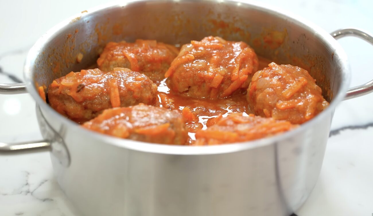 Цією підливкою залийте котлети так, щоб вони були майже повністю покриті рідиною. Накрийте кришкою і залиште тушкуватися на маленькому вогні приблизно 20-25 хвилин. За цей час гречка вбере в себе томатний сік, мʼясо стане мʼяким, а підлива загусне.