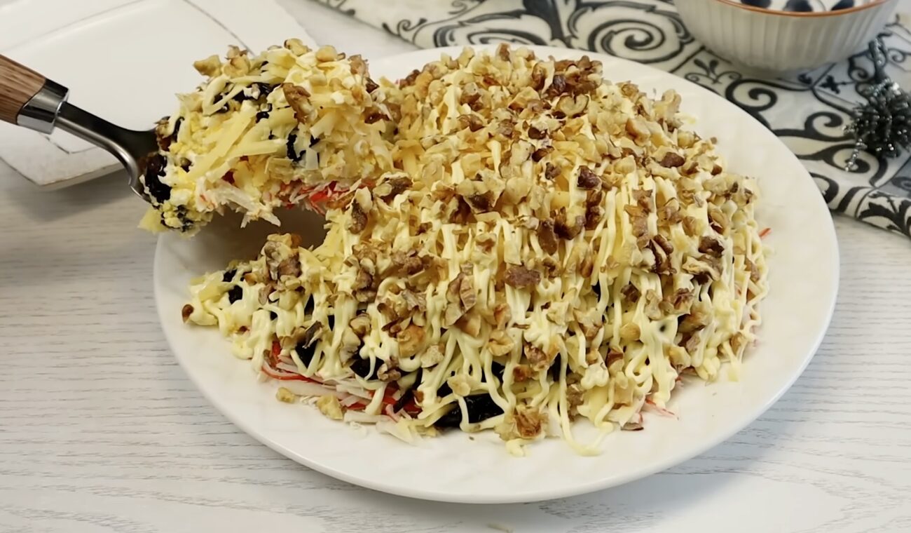 Якщо ви ще не обрали, який салат приготувати на 8 березня, а звичні “Олівʼє” чи “Шуба” вже приїлися, спробуйте приготувати щось новеньке, але не менш смачне. Овочі зараз ще на смак “пластикові”, просто ніякі, тому овочеві салати не приносять жодного задоволення. А от смачне поєднання горіхів, сиру й крабових паличок вам точно прийдеться до смаку.