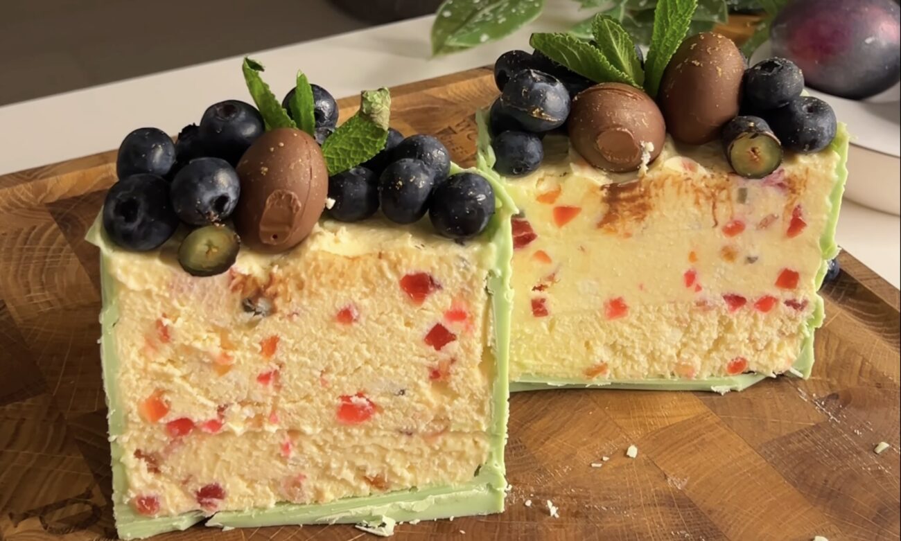 Тепер обережно поєднайте повітряну сирну основу із заварним кремом, всипавши туди жменьку цукатів чи подрібнених горішків для приємного хрусту. Наповніть цією масою ваш заздалегідь підготовлений шоколадний корпус і відправте десерт у морозильну камеру щонайменше на 6 годин. Напередодні Великодня обережно дістаньте паску з форми та переставте її на полицю холодильника – за ніч вона повільно відтане. Для декору дайте волю фантазії!