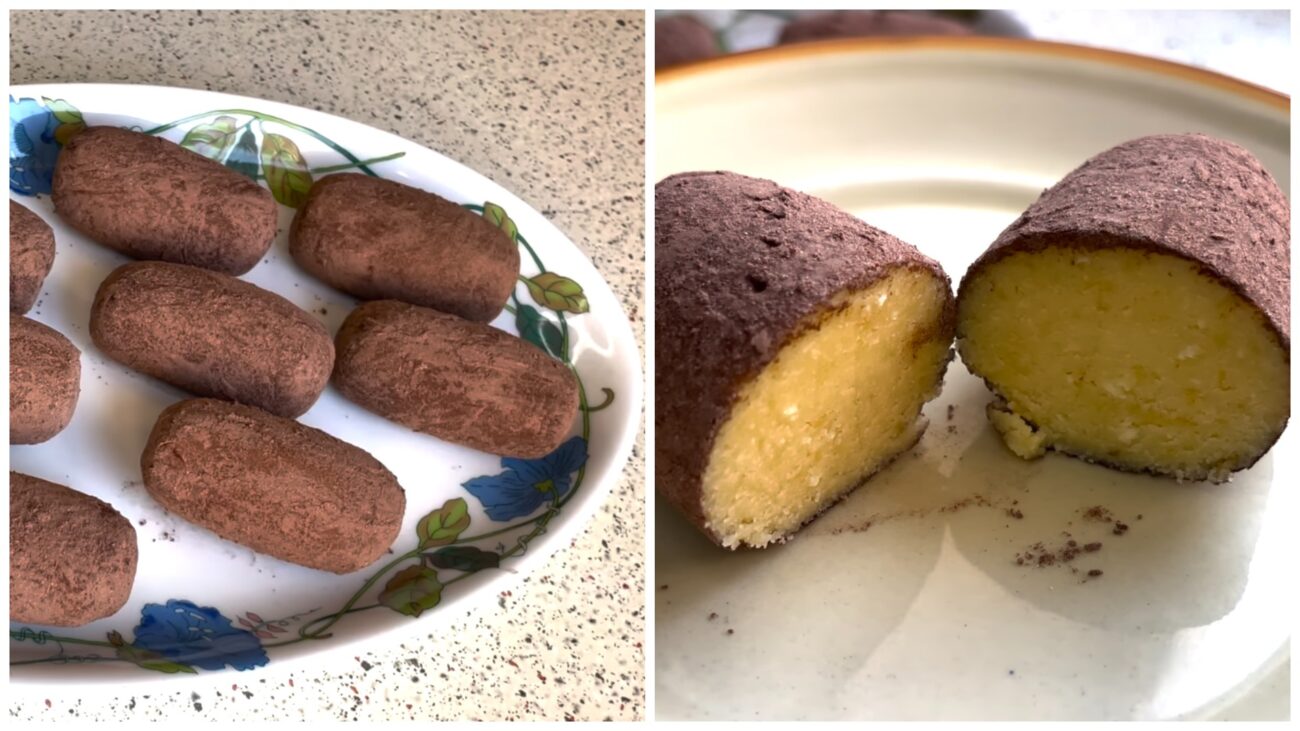 Щоб тістечко виглядало ефектно, треба зайнятися декором. Змішайте в тарілці просіяне какао з цукровою пудрою та щедро обкатайте в цій суміші кожну “картоплину”. Щоб консистенція була більш щільною та цікавою, не забудьте поставити десерт у холодильник хоча б на годину, а краще на дві. Смачного!