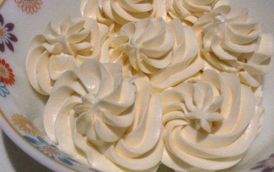 Наступним кроком перемішайте все до однорідного стану. Накрийте крем харчовою плівкою “у контакт” і залиште охолоджуватись у кімнатній температурі. Після цього додайте залишок м’якого вершкового масла та збийте крем міксером до пишного стану. У результаті у вас вийде гладкий, ніжний і густий крем, який не розтікається.