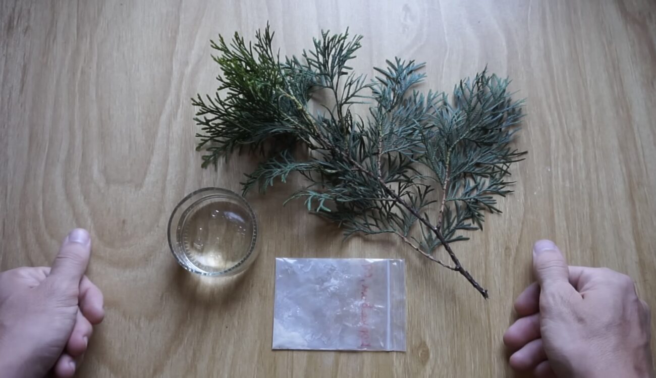 Коли гілочка вже у вас, з нижньої частини треба прибрати всі голочки, залишивши голий стовбурець на 3-4 см. Це треба зробити для того, щоб у вологій землі зелень не почала гнити. Перед посадкою “пʼяточку” можна вмочити в стимулятор росту, але якщо його немає під рукою – не біда, туя напрочуд живуча рослина. Тепер встроміть живці в легкий субстрат із піску та торфу трохи під нахилом.