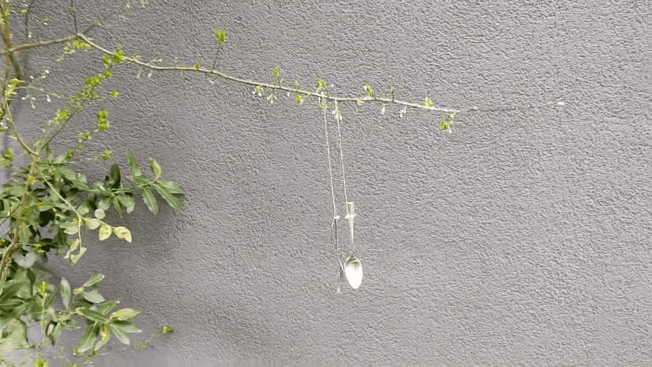 Можливо, ви зараз думаєте, навіщо все це робити. Коли сонце світить на метал, а ложка й виделка рухаються від вітру, вони створюють короткі та непередбачувані відблиски. Птахи й багато комах не люблять такі раптові зміни світла і намагаються триматися подалі. Якщо ж іноді прибори торкаються одне одного і видають тихий металевий звук, ефект стає ще помітнішим.