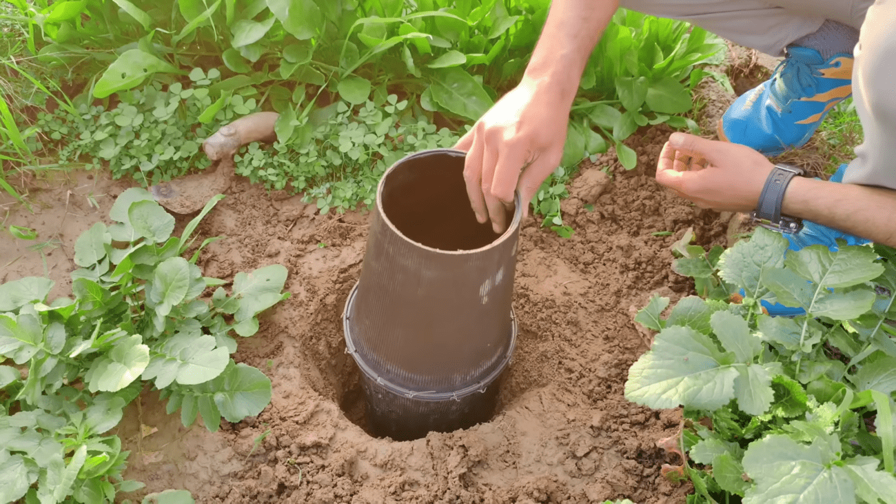 Ідея полягає в тому, щоб створити невелику компостну конструкцію прямо в грядці, використовуючи два горщики або будь-які наявні ємності. Такий підхід дозволяє переробляти кухонні та садові відходи безпосередньо там, де ростуть рослини, а також приваблює до ґрунту дощових черв’яків і корисні мікроорганізми.