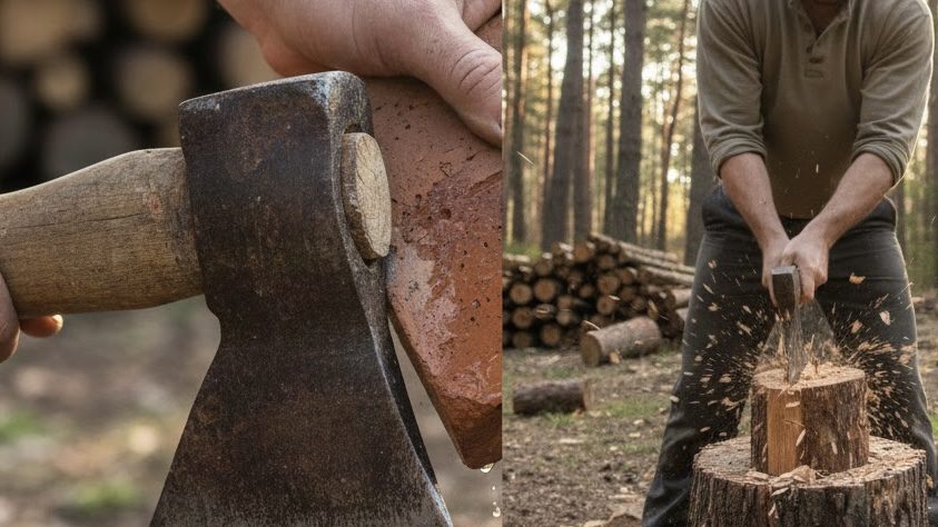 Буває, що сокира затупилася в самий непідходящий момент, коли треба рубати дрова. І тепер доводиться докладати колосальних зусиль, аби розколоти той триклятий пеньок. Але зробити, щоб сокира йшла по дереву як по маслу, можна навіть не використовуючи точильний брусок.
