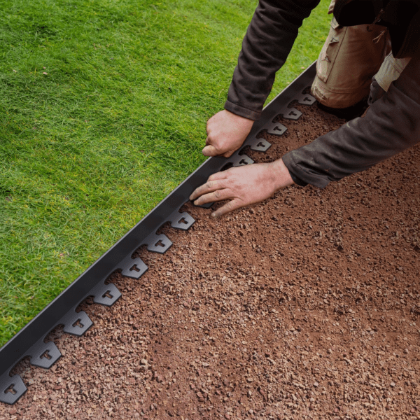 Також відносно просто ви зможете встановити металевий бордюр. Втім коштує він дорожче, але кислотність та вологість на користь йому не йдуть.