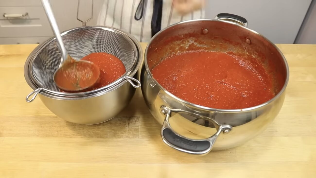 Після того, як овочі проварилися, перебийте масу блендером у однорідне пюре, найзручніше це робити погружним блендером. Далі обов’язково протріть пюре через сито, щоб прибрати шкірки і насіння.