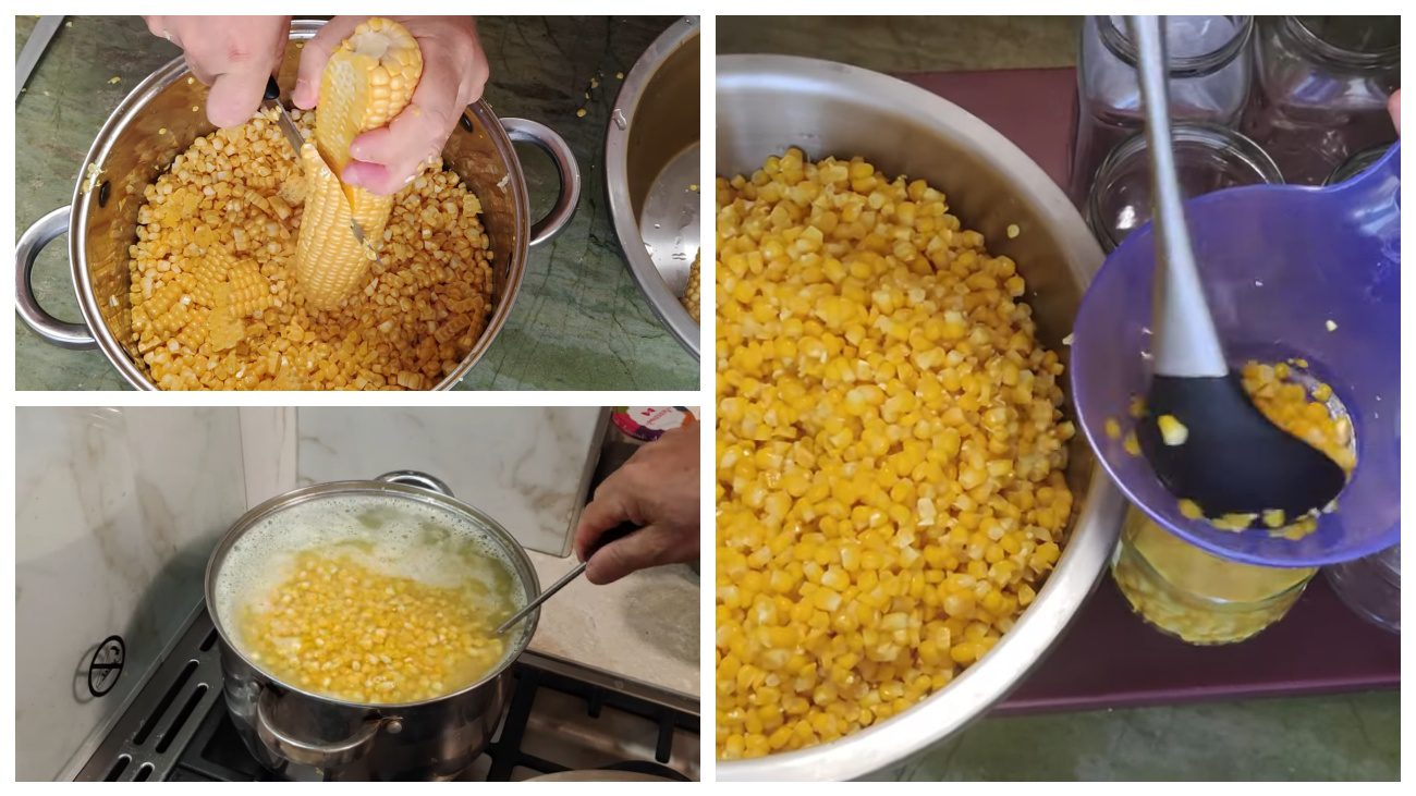 Спершу відберіть молочні або повністю визрілі качани з яскравими жовтими зернами. Вимийте їх і відокремте зерна від стрижня: скористайтеся гострим ножем, ведучи його вздовж рядів. Працюйте уважно, щоб зерна залишалися цілими.