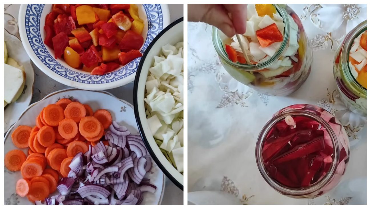 Візьміть цей рецепт за основу, але окрім овочів, вказаних в ньому, ви можете також використати селеру, цвітну капусту, огірки, помідори, цибулю шалот, калину та інші.