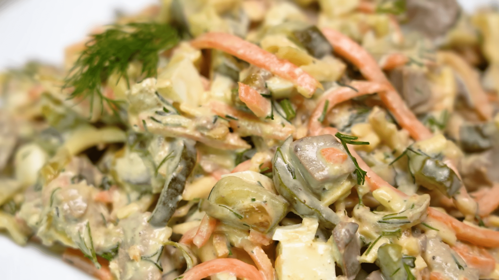 Заправляти салат можна майонезом, сметаною з гірчицею або йогуртом – що вам більше подобається. Для святкового столу салат можна викласти шарами, щоб він просочився. Вийде не тільки смачно, а й красиво. Якщо готуєте для вечері, просто перемішуємо й одразу подаємо. Через кілька годин він стане ще смачнішим, тому його можна приготувати заздалегідь.