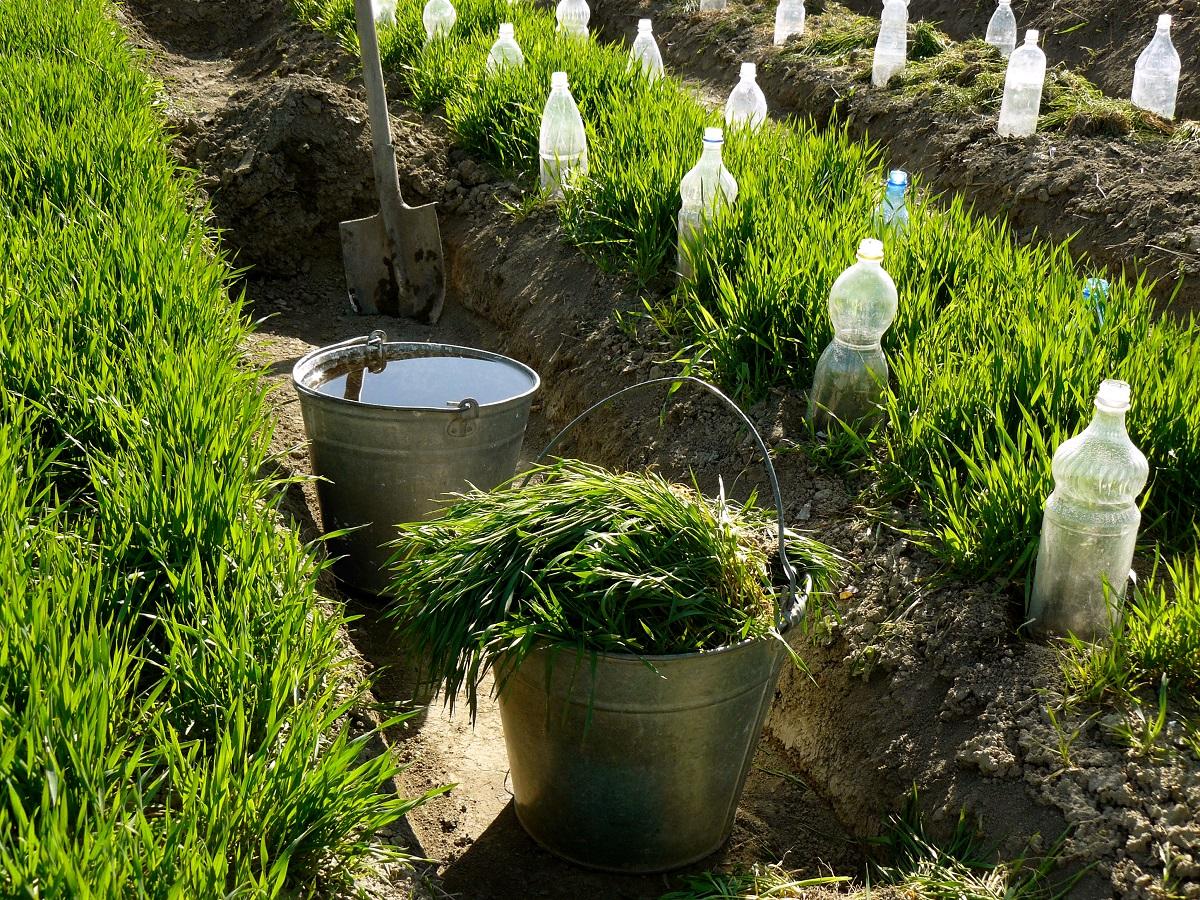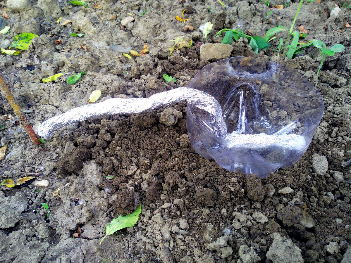 Зі звичайних пластикових пляшок можна зробити крапельне зрошення на грядці. Вода буде поступово вбиратись у ґрунт, не буде заливати кореневище рослини, а культура отримуватиме стільки вологи, скільки їй потрібно. Дорогі системи для автоматизованого поливу не вартують своїх коштів, якщо у вас – не величезне господарство чи ферма. Для домашнього городу краще обрати пляшки з водою.