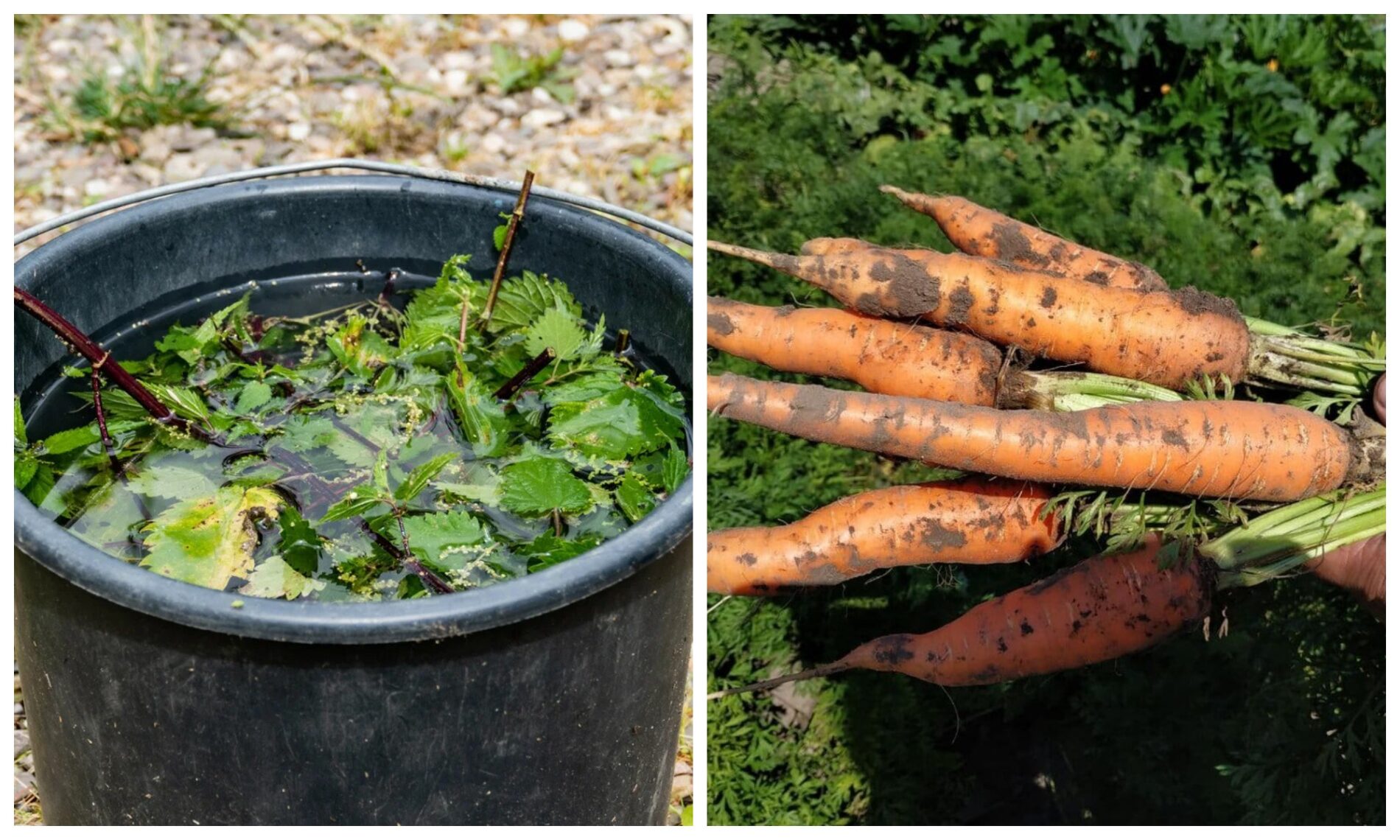 Після цього потрібно ретельно перемішати отриману суміш, процідити її від залишків кропиви та інших домішок і використовувати для обробки городу. Моркву вперше потрібно поливати через 5-6 тижнів після сходів, коли видно 5-6 справжніх листочків. Розведіть настій у пропорції 1:12 та поливайте по 3 літри робочого розчину на квадратний метр. Вдруге обробіть моркву через 8 тижнів після посіву, а втретє – на початку серпня.