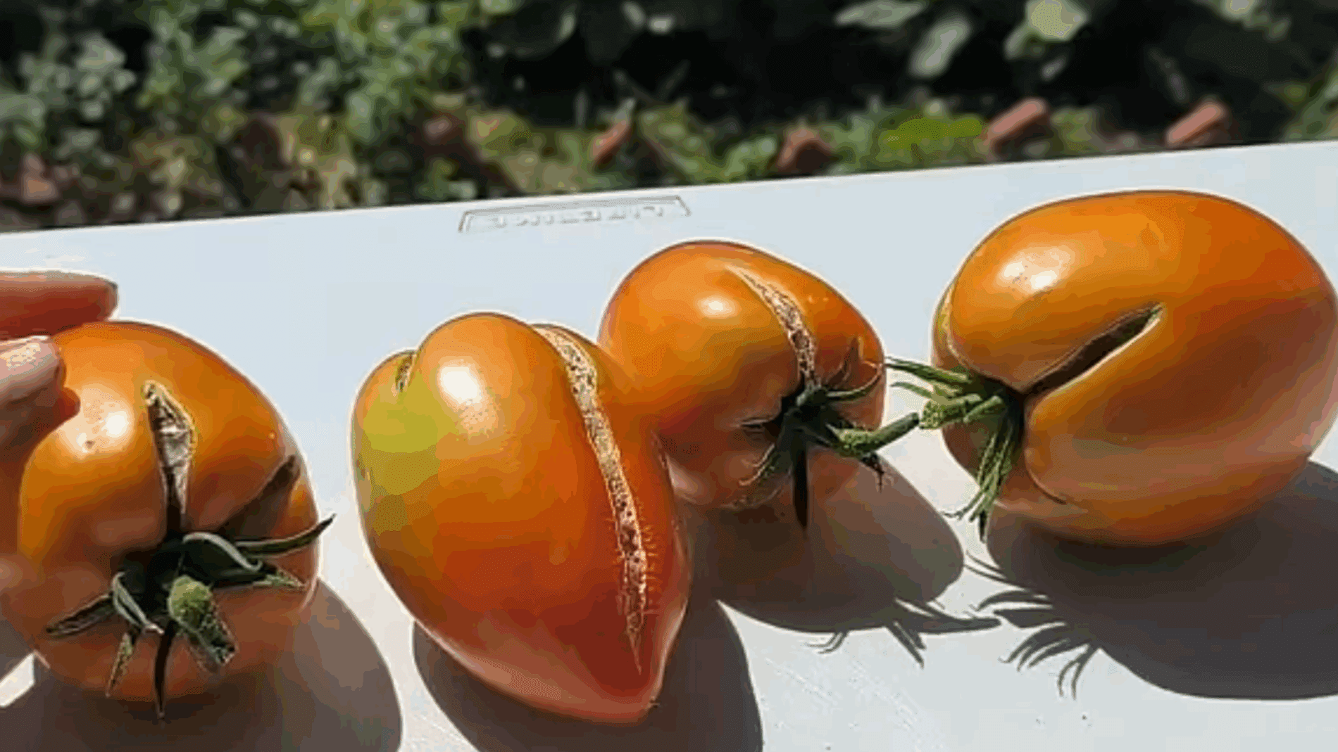 Якщо на томатах з’явились тріщини, це сигнал, що ви щось робите не так. Найчастіше плоди тріскаються після довгої посухи, коли різко дали багато води. Шкірка у помідора тонка і не встигає розтягнутися, коли м’якоть починає активно наливатися вологою, от і тріскає просто на кущі.
