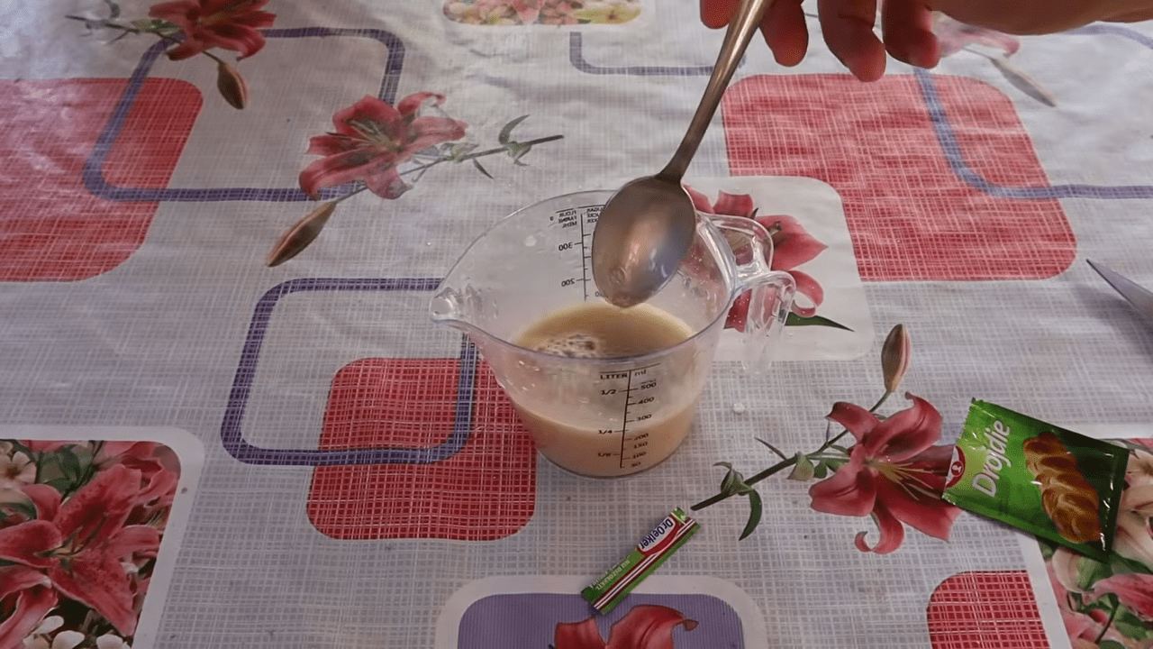 Отже, розчиніть дріжджі та цукор у половині літра теплої води й добре розмішайте та залиште настоюватися на 2–3 години в теплому місці.