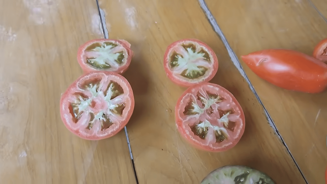 Стиглий помідор начебто й налився соком, і колір має яскравий, і форма правильна — та варто розрізати, як серце обливається розчаруванням: білі, щільні прожилки всередині — наче несподіваний обман. Така вада не лише псує смак, а й наочно показує, що щось у вирощуванні пішло не так.