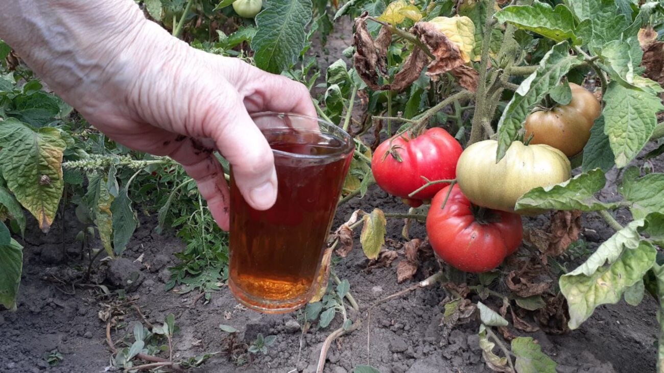 Одним із найпростіших і водночас найефективніших способів зупинити фітофтору є обробка сироваткою з йодом. Для цього в 1 літр молочної сироватки додайте 20 крапель йоду та розведіть суміш у 9 літрах чистої води. Також потрібно додати 2 столові ложки рідкого мила, або 50 грамів цукру, щоб розчин краще тримався на листі.