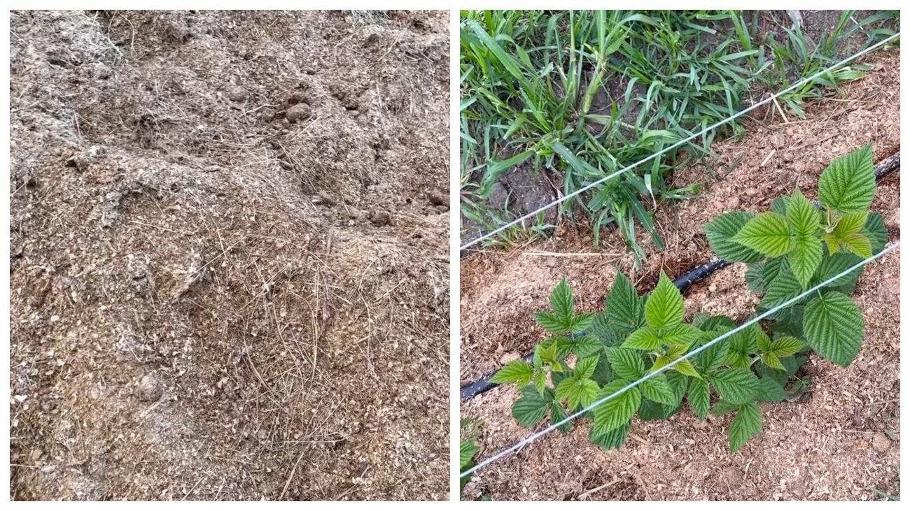 Влітку молоді паростки малини особливо чутливі до спеки та пересихання ґрунту. Саме тому досвідчені господарі радять мульчувати їх товстим — не менше 10–15 см — шаром суміші, що не лише утримує вологу, а й поступово живить землю. Таке покриття працює, наче природний кондиціонер: знизу прохолодно та вологе, зверху — захист від сонця.