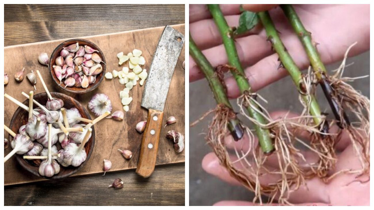 Серед усіх домашніх методів особливу увагу заслуговує часник. Його використовують у доволі оригінальний спосіб: зубчик вставляють у ґрунт і насаджують на нього живець — наприклад, троянди. Після цього висаджують у невеликий горщик чи теплицю для пророщування.