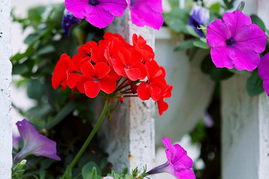 Кашпо – ось ідеальний спосіб додати барв у ті куточки саду, де немає можливості посадити квіти в ґрунт. Герань і петунія справжні фаворити садівників, бо регулярний полив і підживлення – весь секрет успіху.