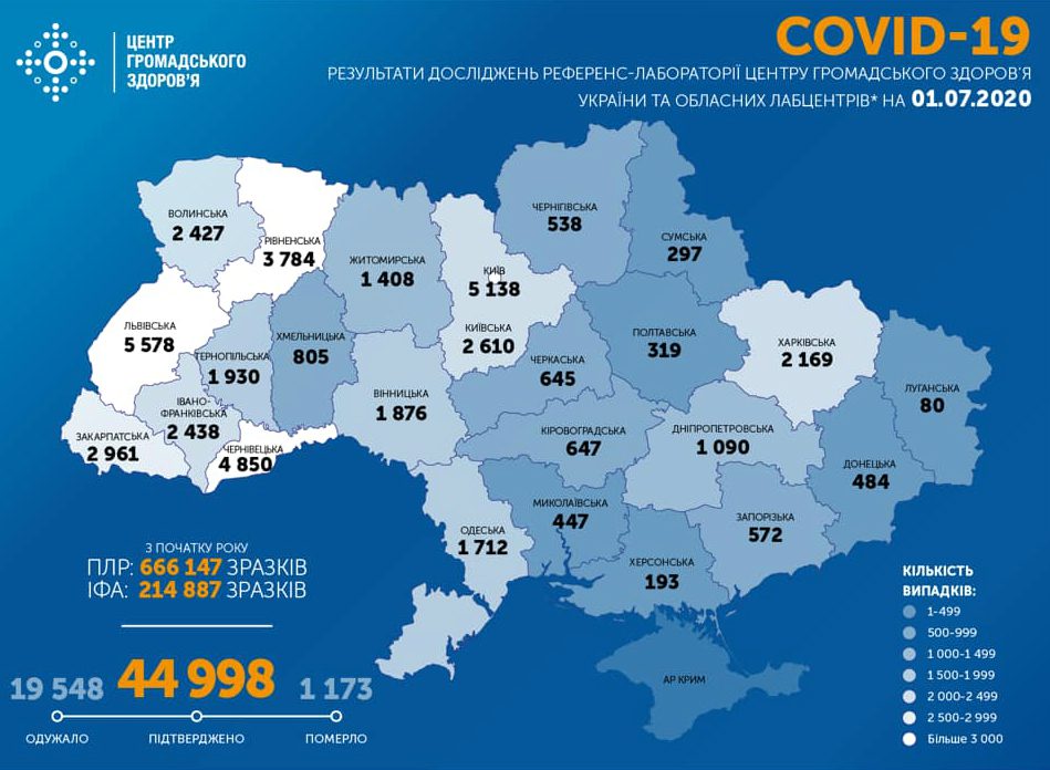 Карта заболеваемости коронавирусом в Украине на 1 июля