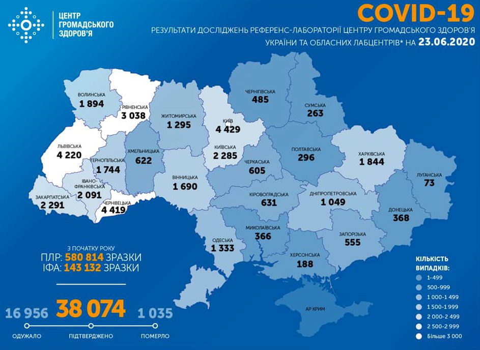 Карта заболеваемости коронавирусом в Украине на 23 июня