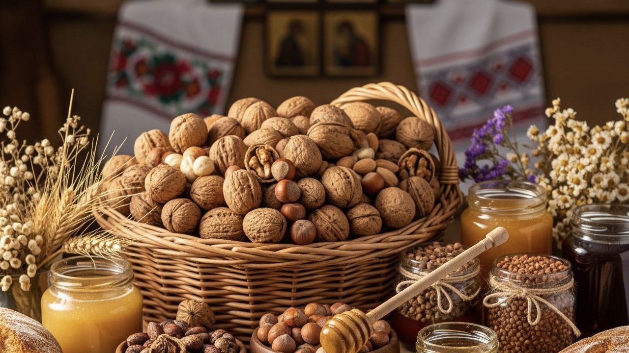 На святковий стіл обов’язково готують страви з горіхами. Це може бути медово-горіховий кекс, рулети з маком та горіховою начинкою, пироги, узвари з сухофруктами й горіхами, а також свіжоспечений хліб із додаванням насіння чи подрібнених горіхів.